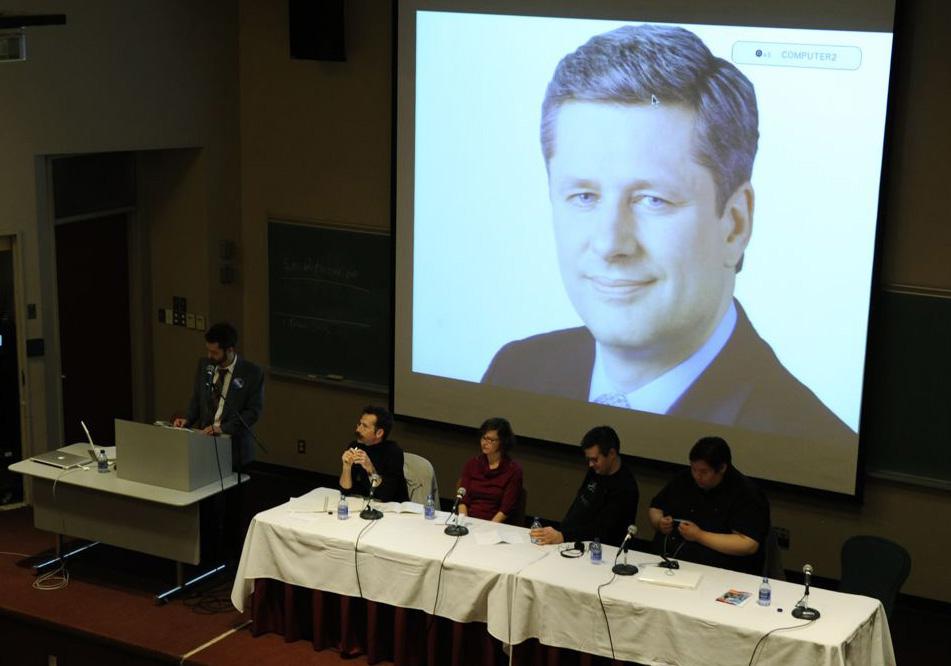 The weekend’s final panel, “The Future of Artist-Run Culture: What will an Artist-Run Centre look like in 15 years?”, was also naggingly inconsistent. Fredericton-based artist and Third Space Gallery director Chris Lloyd projected a rather bleak ARC future in 2023 in tandem with a record-breaking 17-year prime ministerial run by Stephen Harper. It was half-serious food for thought. Or Gallery’s Jonathan Middleton did well to point forward to some innovative, alternative artist-run modelling from the grand historical scale of the Vienna Secession to the locally engaged spontaneity of Vancouver artist Kristina Lee Podesva’s colourschool project. But the most surprising and perhaps problematic example came from artist and Eyelevel Gallery director Eryn Foster. Citing the day-to-day drain of administrative pressures at the Halifax ARC, Foster plans to return the gallery and office routine to its 1974 beginnings for one month—typewriter, rotary dial phone and all. It’s an experiment in “unplugging” from the distractions of email and Internet to make real time for artists and audiences. The conference crowd applauded this Luddite affirmation that less is more. But it seems, from all of the weekend’s proceedings, that the future for ARCs lies not in disengaging but in re-engaging, not unplugging but plugging in, not responding to the past but looking ahead to the future. ARCs need to once again break from the predictable and embrace the unexpected. Take, for example, Artspeak (one of the country’s leading ARCs) and its recent move away from the traditional gallery model to become a research-focused resource centre with off-site exhibition programming. Time, as always, will tell, but one thing is sure—I wouldn’t want to be in Foster’s chair when she opens her Eyelevel email inbox at the end of that month.