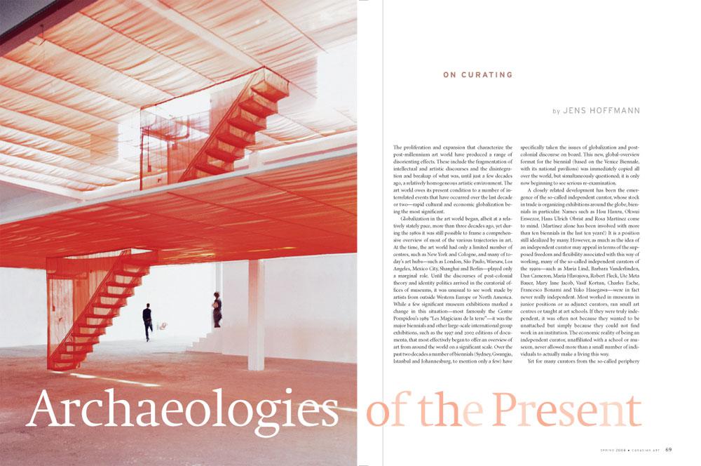 In this March 3 telephone interview, San Francisco-based curator Jens Hoffman opens up to Leah Sandals about market forces, globalization processes and institutional change—some of the factors that prompt his call for “true innovation” in the curatorial realm in his essay Archaeologies of the Present in the current issue of Canadian Art. Hoffman speculates on what a coming US recession might mean for the art world and reveals a unique project he’s working on to create better venues and systems for contemporary art today. (Running time approx 10 minutes)