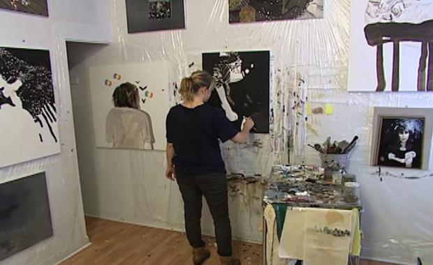 Margaux Williamson at work in the studio